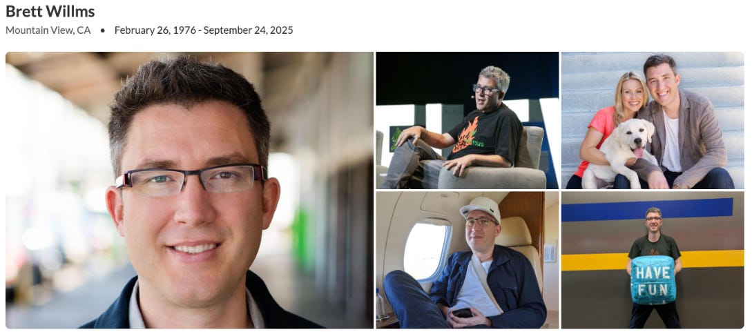 Brett Willms worked at Google 2010-15 & 2016-18 and was beloved by his colleagues, friends, customers and family. You can share your condolences here. He personally took the time and energy to brainstorm ways Xoogler can be more helpful to more people and even thought of a unique way to bring people together over coffee. His energy and positivity will be sorely missed. Our deepest condolences to his family.